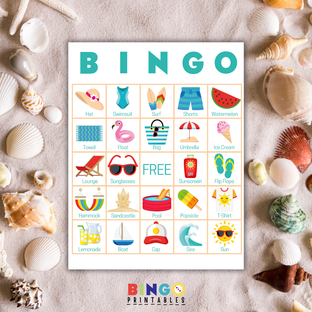 Ready to print & play now - this Summer-themed bingo card game is the perfect activity.